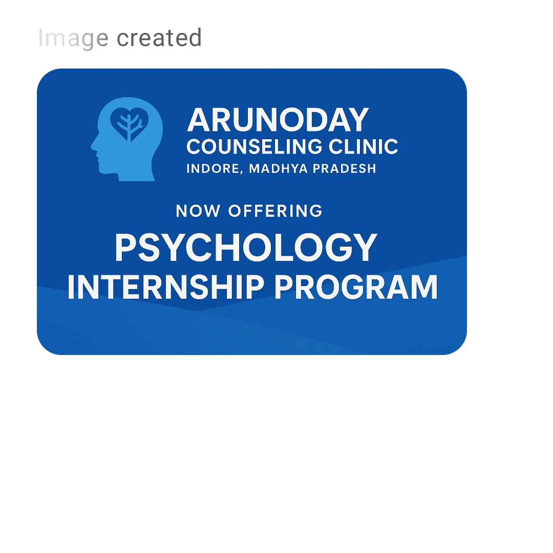 ⸻ 🧠 ARUNODAY COUNSELLING CLINIC Empowering Minds • Enriching Lives ⸻ 🌿 INTERNSHIP PROGRAM 2025 For Psychology Students, Teachers & Counsellors Are you passionate about understanding the human mind and helping others lead fulfilling lives? Join our Arunoday Counselling Clinic Internship Program — a unique opportunity to gain hands-on experience in professional counselling, assessment, and mental health support. ⸻ 💼 What You’ll Learn: • Psychological assessment & case documentation • Individual & group counselling sessions • Mental health awareness & outreach programs • Supervised training by certified clinical psychologists • Career guidance in counselling & therapy practice ⸻ 🎓 Who Can Apply: • Undergraduate & postgraduate Psychology Students • School College Teachers interested in counselling • Practising Counsellors seeking supervised experience ⸻ 🗓️ Duration: Flexible internship programs – 2 weeks to 3 months (online offline options) ⸻ Location: Arunoday Counselling Clinic Best psychologist Contact Us: Arunoday counselling clinic Indore 📱 Phone: 9826020253 💬 “Learn. Listen. Lead the Change in Mental Health.”