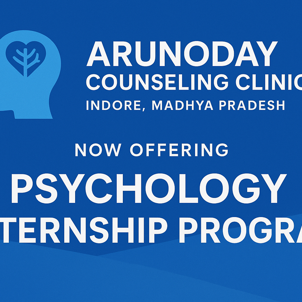 🌸 ARUNODAY COUNSELLING CLINIC, INDORE 🌸 Mental Health Psychotherapy Centre 📢 INTERNSHIP PROGRAM IN PSYCHOLOGY For BA MA Psychology Students Aspiring Professionals ⸻ ✨ What You Will Learn: ✔️ Counselling Process Therapeutic Skills ✔️ Cognitive Behaviour Therapy (CBT) ✔️ Dialectical Behaviour Therapy (DBT) ✔️ Play Therapy Art Therapy ✔️ Understanding Psychological Disorders ✔️ Symptoms, Diagnosis Treatment Approaches ✔️ Coping Mechanisms Mental Health Strategies ✔️ Types of Psychology Practical Applications ⸻ Special Training Areas: 🔹 Corporate Counselling 🔹 Role of Child Psychologist 🔹 Marriage Relationship Counselling 🔹 Rehabilitation Counselling ⸻ Why Join Us? 🌿 Practical Exposure 🌿 Case Study Discussions 🌿 Live Observation Sessions 🌿 Professional Guidance Mentorship 🌿 Internship Certificate Provided ⸻ 📍 Location: Arunoday Counselling Clinic, Indore 📞 Contact: 9826020153 **Shape your career in mental health with hands-on experience Arunoday counselling clinics Mental health therapist Marriage counsellor Child psychologist Psychotherapist